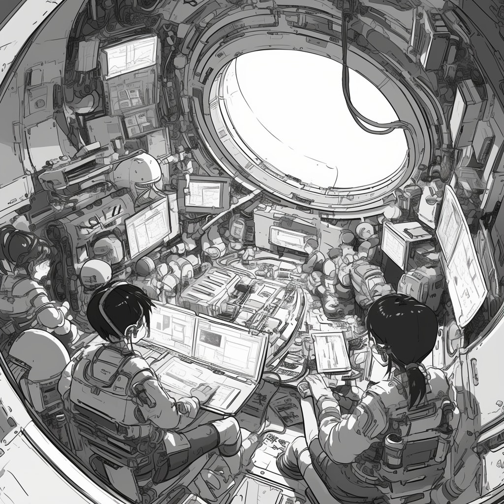 建设飞船内空荡荡的,窗外是浩瀚的太空和巨大的地球。