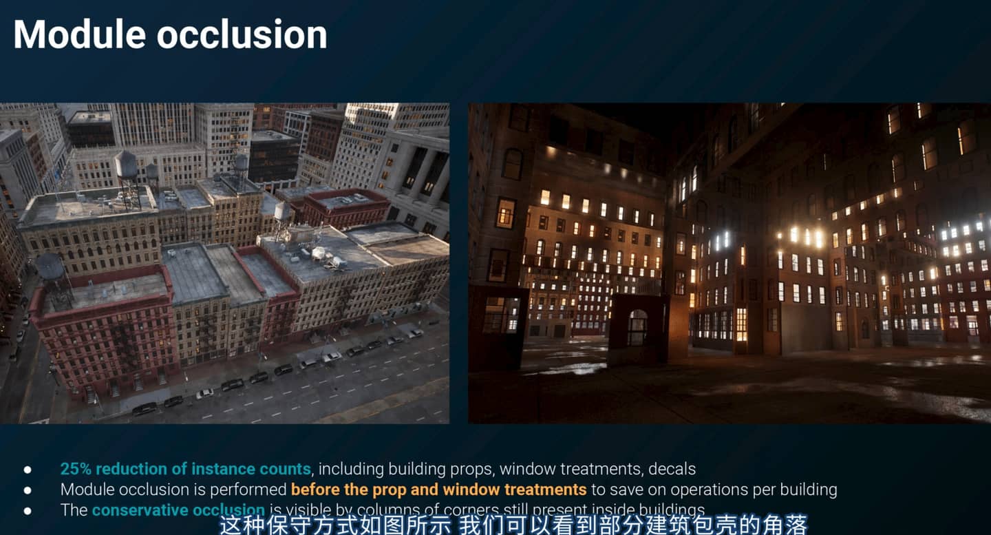 后面讲了遮挡相关的内容,通过计算各个角度都能被遮挡的部分,把这部分删除可以过滤掉25%,节约了内存?我不太理解,ue不是对不显示的部分不加载的吗?被遮挡有必要特意去删除吗?感觉这个计算很复杂,跳过。