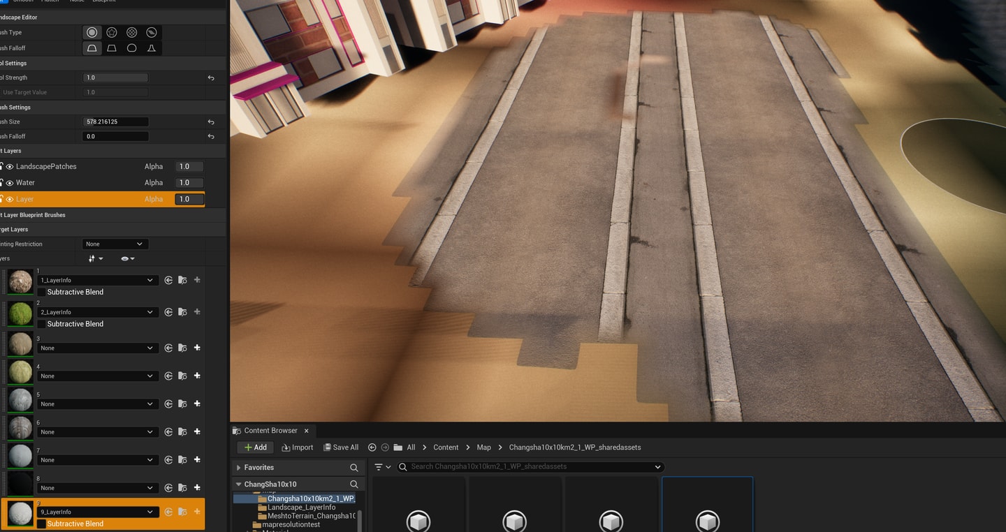 我测试了一下用nvspline配合sidewalk mesh,开启snap to ground 和snap to ground angel可以使得道路近乎完美贴合landscape,而且操作流畅这样的话应该是可以达成,实测可以完成复合材质,但是要让它精确配合mesh尺寸,经测试可以使复合材质表面到位,但是交叉会出问题,另外在编辑模式和game mode下这玩意儿表现是不一样的。