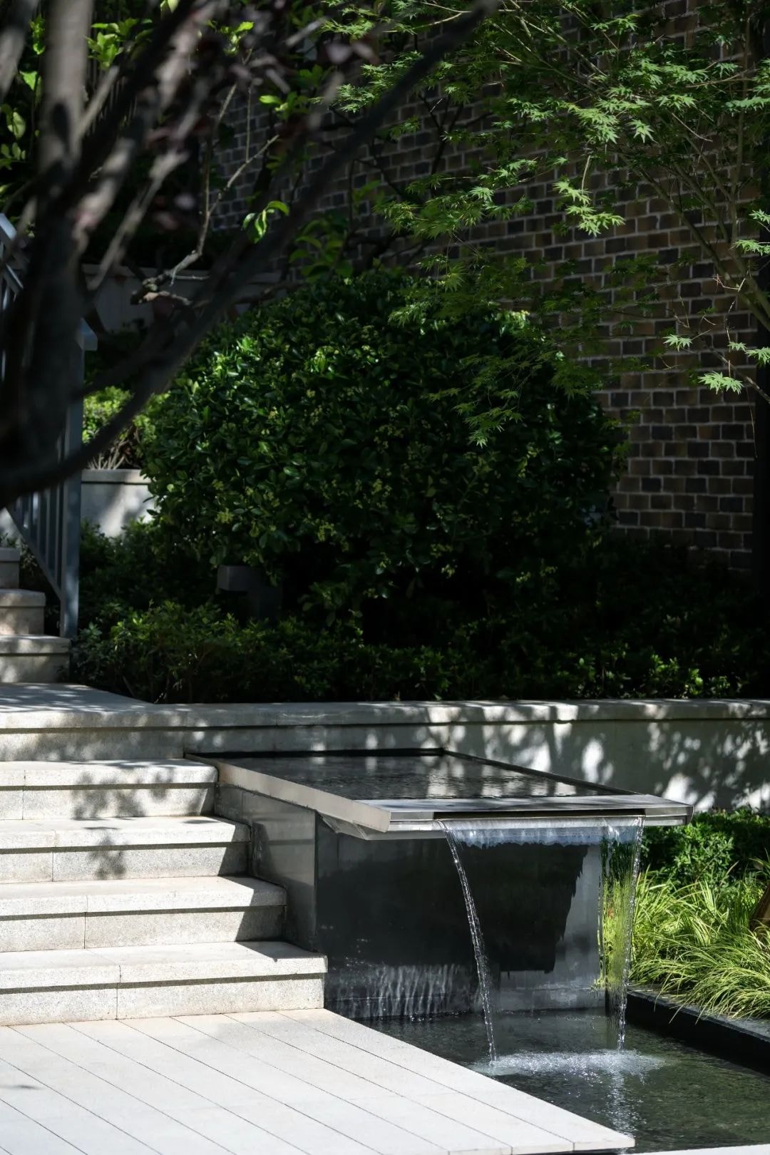 似乎联排还有高差?不知道这个阶梯是啥,或许只是依附外层围墙的绿化带。水景设计很有意思,信手拈来,不过就是太小了。