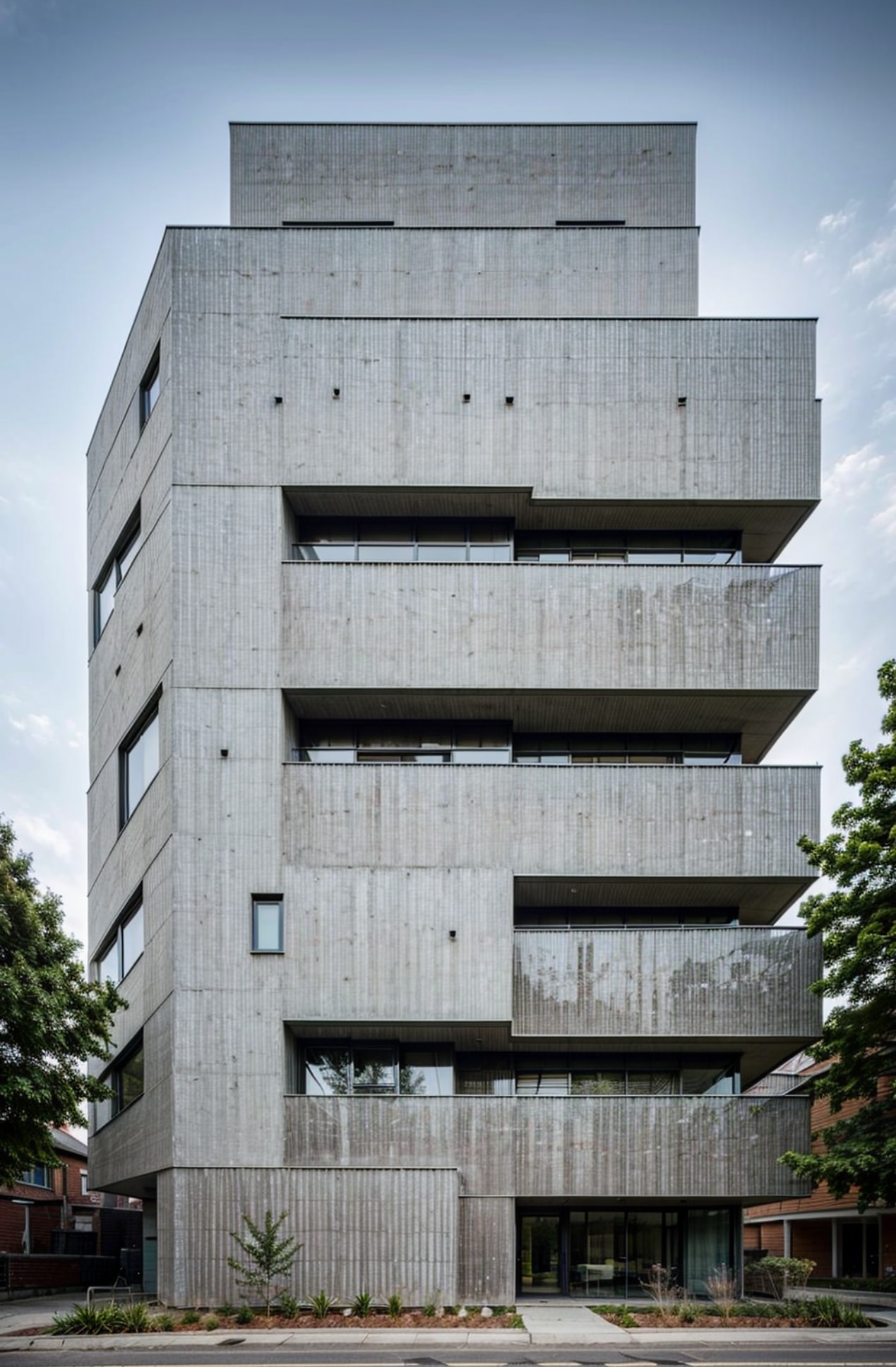 Modern architecture,simple shape,sharp outline,stone texture,glass windows,building facade,daylight,outdoor,street,exquisite details,exquisite craftsmanship,beautiful picture,authenticity,high quality,masterpiece,calm atmosphere,No people,no cars,green streets, lora:UIA重磅升级_建筑写实类6.0_1:0.7,lora:add_detail:0.5,