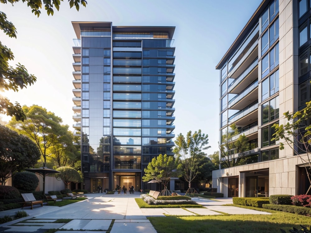 a02,tree,plant,plant,skyscraper,residential building,,no humans,tree,scenery,outdoors,building,rock,grass,road,day,lamppost,sky,,(extremelydetailedCGunity8kwallpaper),(masterpiece),(bestquality),(ultra-detailed),(bestillustration),(bestshadow),