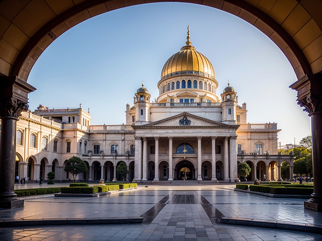 UIAXD5.0,qiongding,arafed view of a large building with a dome and palm trees,ornate palace made of green,beautiful futuristic new delhi,pyramid surrounded with greenery,india,photo taken with ektachrome,islamic architecture,ancient india,taj mahal,ornate and intricate backdrop,ornate tiled architecture,golden hour photograph,stunning grand architecture,royal garden landscape,golden hour photography,monumental structures,domes,google arts and cultures,golden pyramids,hdr photography,intricate architecture,indian patterns,intricate triangular designs,the grand temple of flowers,islamic art,unsplash photo contest winner,white marble buildings,dome of wonders,indian art,travel photography,beautiful ancient garden behind,a palace with a thousand long,lora:UIA建筑_欧式建筑_苍穹之顶_1.0:0.5,lora:新中式&街巷空间_v1.0:0.4,