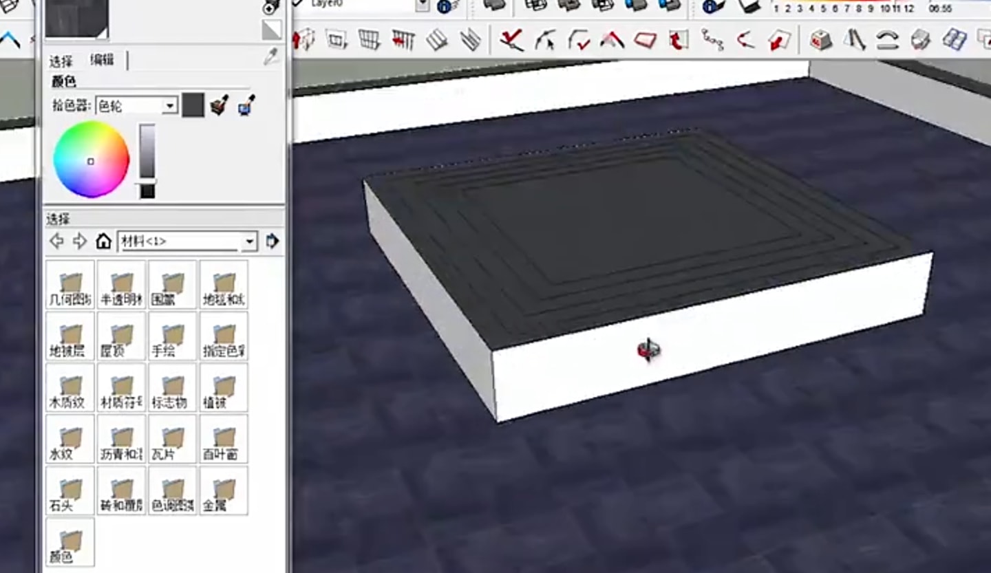 这样就好理解像我家楼下这个“大平台”的复杂组合砖花是怎么搞得了,就是一个个形状画出来给不同的材质。