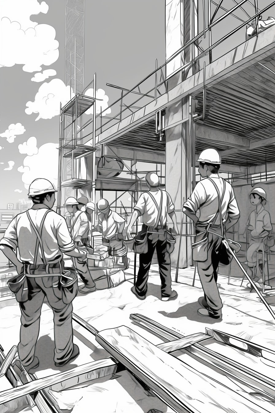 昨天在削弱了location参考并对人物部分添加强对比度和多面部细节之后出来的效果,对比昨天的,明显感觉更为生动了,环境衔接也基本可以。发现问题主要出在了loacation为construction site的部分,因为这部分给了3个location参考都是不带人物细节,且有多个是背影,最终出来的效果大多是远景缺乏细节。考虑到construction site占的篇幅很大,这就意味着多个场景都是远景缺乏角色表现力的,我想对相关的url参考做调整,这里问题就来了当工地的环境参考被削弱后,工地的环境一致性就衔接不上了。